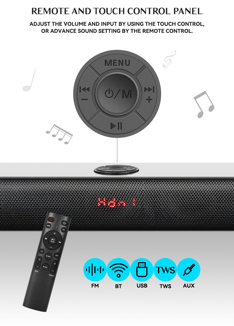 New Home Theater Soundbar for Tv Wireless Speakers Sound Bars for TV with ARC/OPT/AUX/Remote Control