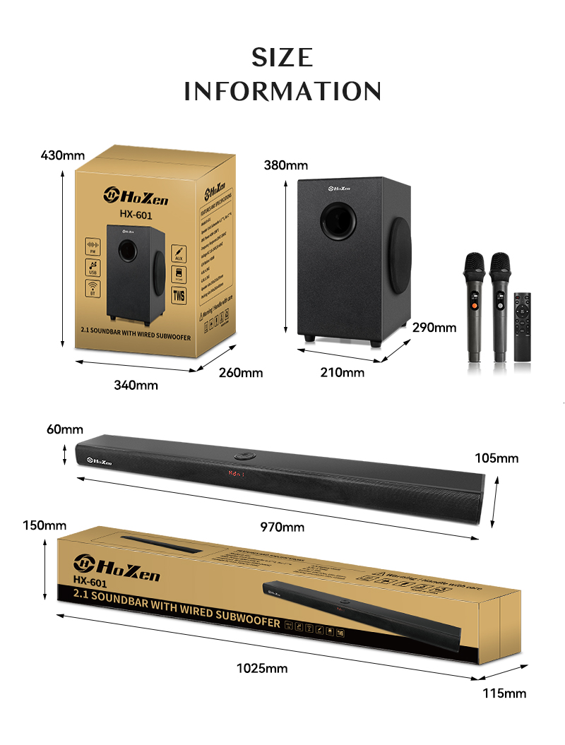 Product size (mm) | Woofer:210*290*380mm/Tube:970*105*60mm |